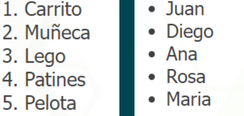 2. Haga 1 lista, que contenga el nombre de sus 5 juguetes favoritos,